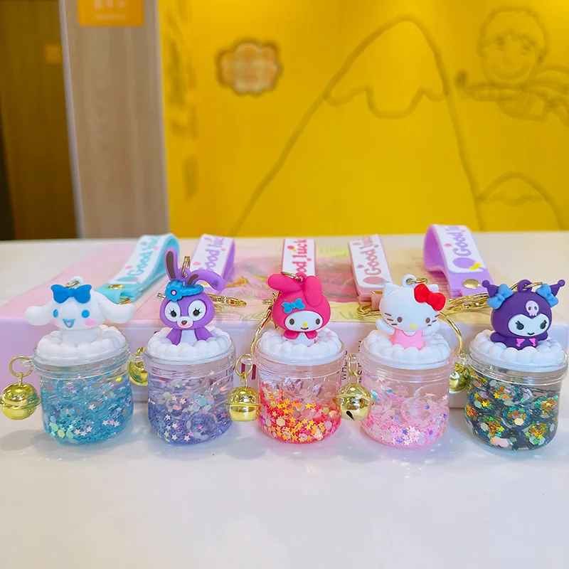 Add a splash of charm to your keys or bag with this Sanrio Quicksand Bottle Keychain! Featuring floating glitter and adorable Sanrio characters, this playful accessory brings a fun, interactive element to your everyday style. Perfect for fans of cute stationery and kawaii collectibles.