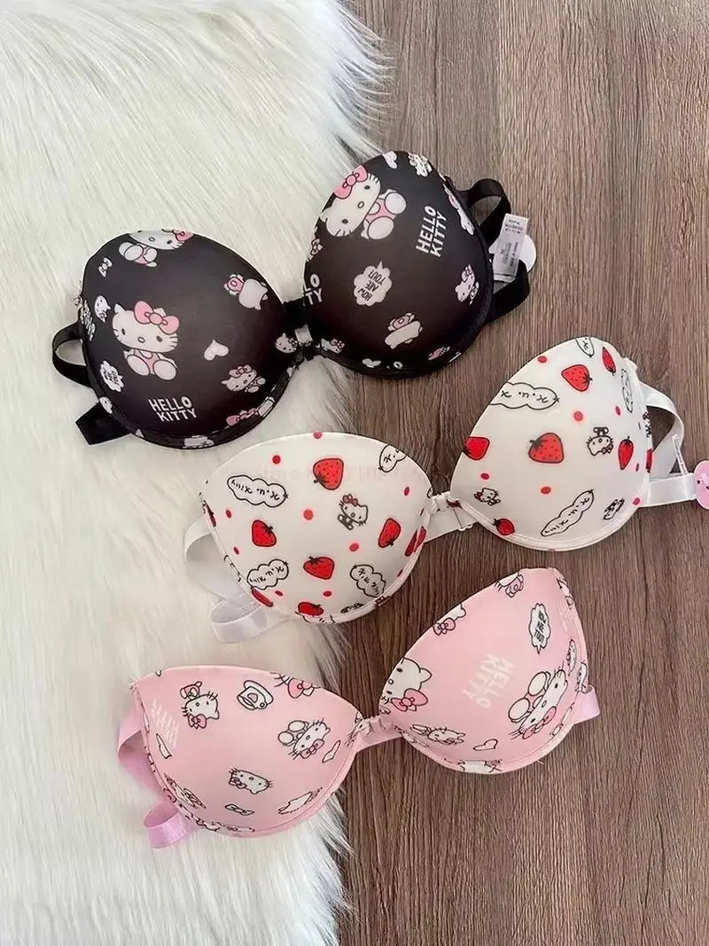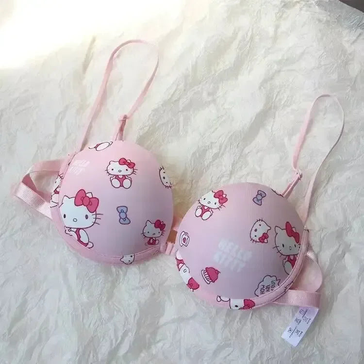 Kawaii Sanrio Bra Set Hello Kitty Sweet Underwear Panties and Bra Set Push-Up Bra Comic Underwear Sexy Pure Desire Bra Girl Gift