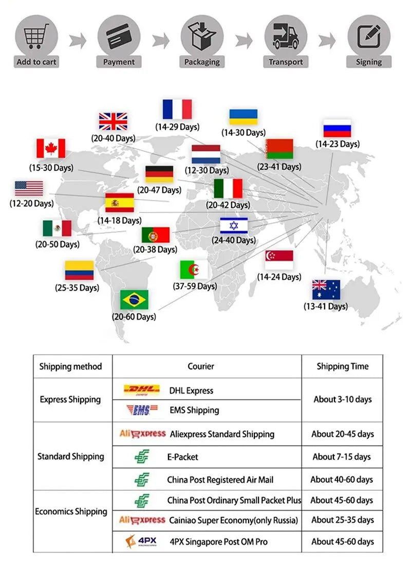4.If you have not received your order within 60 days from payment, pls contact us. We will track the shipping information and reply you as soon as possible.