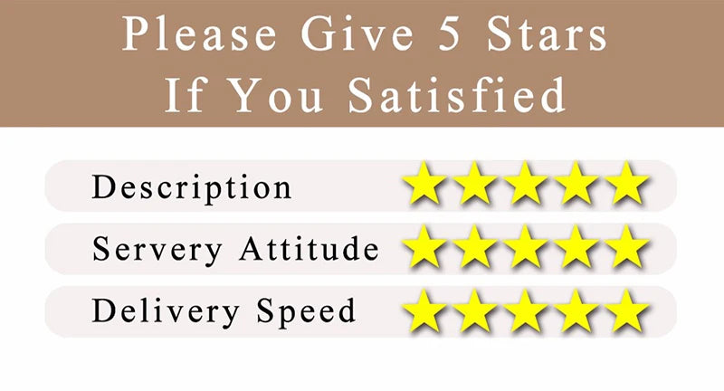 1.if you are satisfied with the items and our service, please take a minute to leave us a positive with 5 stars.